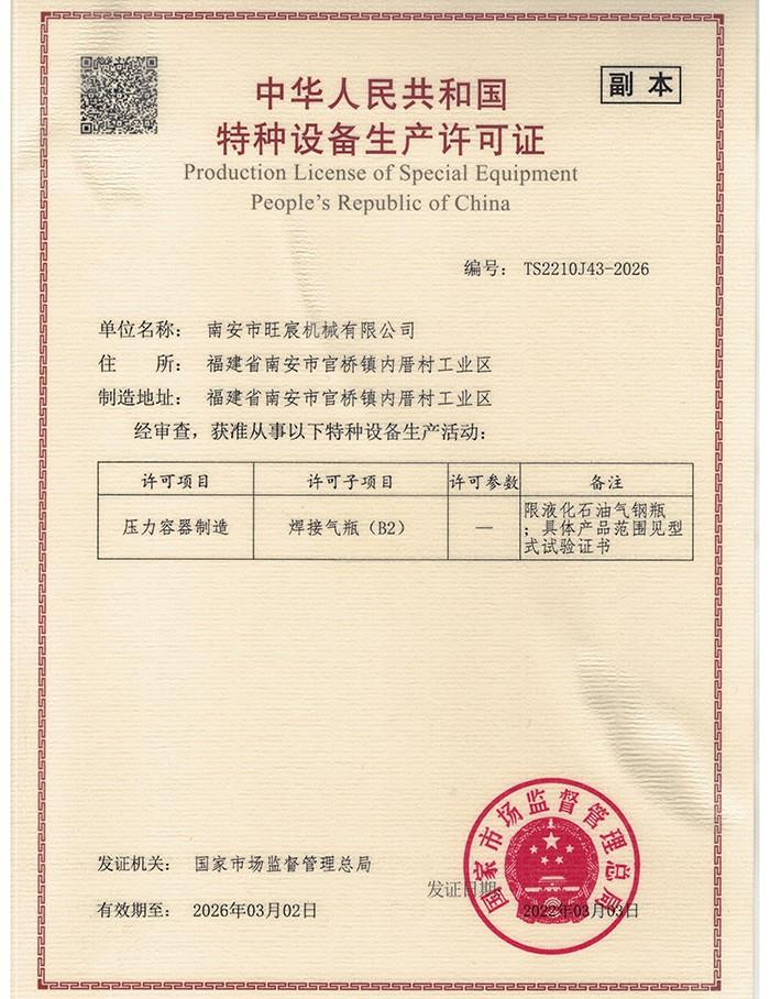 公司自2012年,專注液化石油氣鋼瓶生產(chǎn),累積豐富特種設(shè)備制造經(jīng)驗(yàn),并持二類壓力容器制造許可證(B2級),確保產(chǎn)品符合高標(biāo)準(zhǔn)。